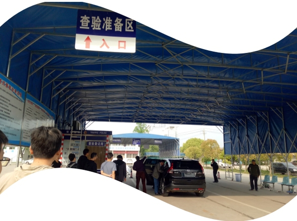 三、将车辆驶入查验照相区,驻车熄火,支起引擎盖,持申请资料交查验员查验、照相。