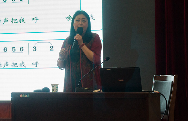 江锦秀教授长期从事音乐创作、音乐教育等方面的教学与研究。她从理解音乐元素里的情思、感受音乐风格的多元,感慨民族音乐中的坚韧、回望音乐世界中的人生、共鸣音乐故事里的美好等六个方面为师生们讲述了音乐的来源,深入阐释了音乐与文化源远流长的历史。江锦秀教授将音乐中的古典民族器乐、民歌等精髓内容结合音乐理论予以系统讲解,通过生动的欣赏形式让师生们学习掌握更多音乐文化知识,展示民族音乐的魅力。