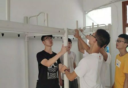 安装队成员黄志兴同学介绍说,“我记得我们每天早上5点半起床,从早上6点工作到中午12点,中间吃饭休息一两个小时,下午2点到晚上8点继续组装床铺,后面几天,新生陆续到公司报到,我们不得不延长工作时间,有时组装到半夜12点,每天加班加点,只希望能够尽快的拼装好,让同学们都能够有床睡。”他回忆道:“当时场面很混乱,材料也不够齐全,需要自己楼上楼下到处去找材料。有的同学更是手划伤脚扭伤,我们一开始都没有注意,直到晚上回到寝室才发现,但是同学们却没有因为这点小伤而放弃,都在努力克服困难,忍受疼痛,决不轻言放弃。对于师生的表扬,袁晶同学说:“嘉奖不是属于我一个人的,它是属于我们整个组装队伍的,这不仅仅是帮公司解决临时困难,也是让我们自己有一个休息的地方。希望在今后能有更多的同学能够和我们一样在公司需要我们的时候挺身而出,帮公司、同学解决困难。学工部、校领导也对我们表现出了亲切的关怀,在深夜十一二点还来看望我们,更是为我们准备了凉茶、水和手套,我们很感动也很感激。”