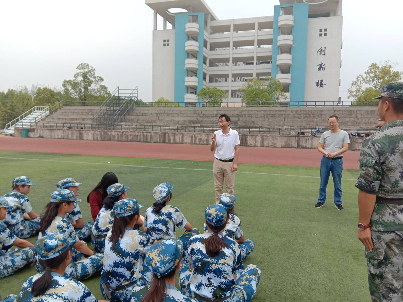 其中经理程晓敏和员工以及教官们作了交流,鼓励大家认真军训,锻炼自己,程经理说,军训不仅是锻炼自己的机会,更能磨炼每个人的意志,同学们要不怕吃苦,同时讲究纪律性,学会自律,提升自我,为老员工活打下良好的基础,给自己的成长历程再添一抹光彩。