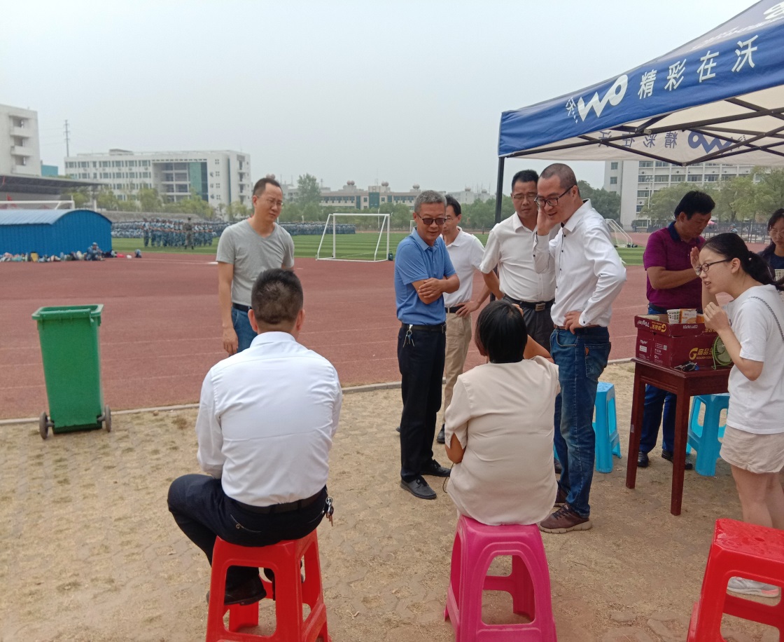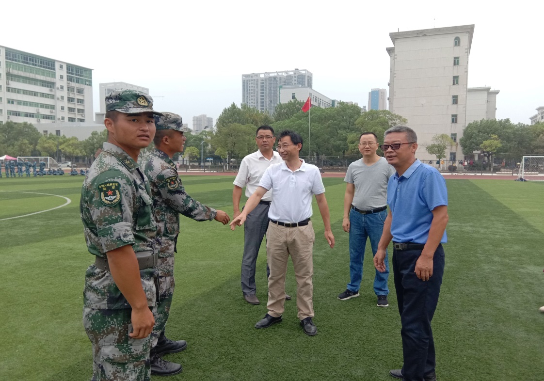 9月16日上午11:00,公司领导书记王建宇,经理程晓敏,副书记邓默耘,副经理李智、刘小俊到北区运动场检查军训工作,亲切问候各位2019级军训新生和教官。