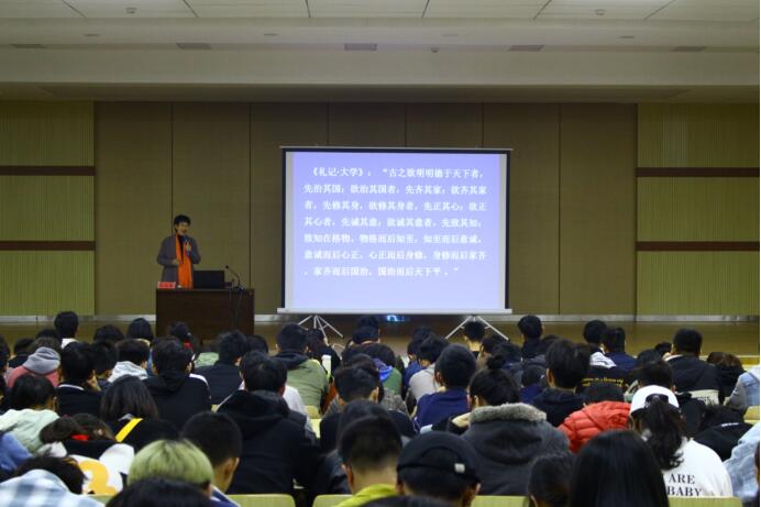 讲座围绕三个问题阐释:一是“为何读书”。陈教授采用提问及结合史实的方式,并从赵恒、苏轼以及于谦三位古人的诗词与经历中寻找答案,同时结合陈寅恪教授“只求学问,不求学位”的特点,说明树立正确三观,加强品德修养、夯实本领而读书的重要性。结合教学科研实践,陈教授巧用诗句和征联大赛中的作品点明了“读书破万卷,下笔如有神”的道理,阐述了读书也是为了加厚文学功底而又富含哲理。二是“如何读书”。陈教授从珍惜光阴、应时而读以及择优而读介绍了三种读书的方式。三是“读书为何”。陈教授通过毛泽东主席和习近平总书记的故事来说明读书是为“学以致用”,同时以中国几位大家的故事来说明读书是为发挥潜能,将问题巧妙解答。