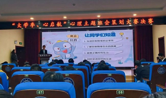 11月21日晚上七点,心理主题班会策划大赛决赛在北区致远楼三楼会议室拉开序幕。比赛过程中,选手们的表现十分出色,他们通过精彩的PPT展示以及声情并茂的演讲给现场的评委老师和观众留下了深刻的印象。公司崔家傲同学的参赛主题是“调试情绪,应对压力”,他以风趣的演讲方式和适当的肢体动作向评委同学们介绍了控制情绪的重要性并提出了有效调节情绪的方法。
