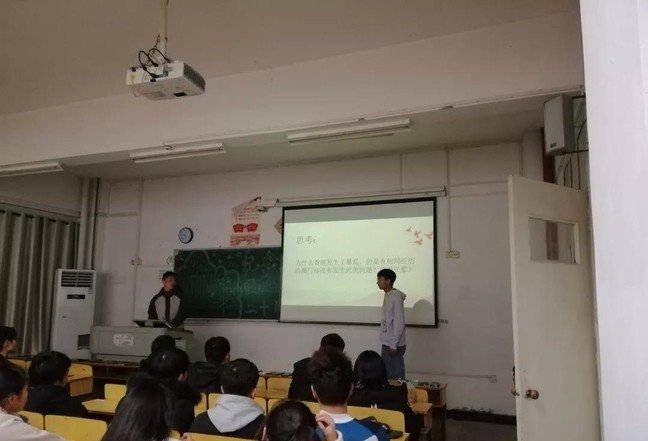 团会开始前,组织部成员检查各班板报制作是否工整干净,确保会议顺利进行。团会伊始,各班团支书播放七子之歌,并回顾了澳门多年的历史轨迹,营造良好的氛围,激起了全体同学的爱国之心,讲解过程中,团支书与同学们积极互动,相互配合,展现了莘莘学子的博学风采,在活动过程中,同学们就一国两制中我国的两个地区澳门和香港展开了激烈的讨论。最后,团支书对本次会议进行总结,同学们有序离场。此处活动充分激发了同学们的爱国情怀,加强了同学们积极进取、团结爱党的美好品质。