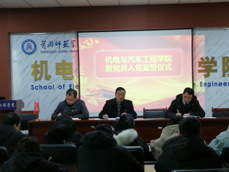 党委副书记邓默耘同志宣布2019年下半年预备党员审批结果。经支部大会讨论表决通过、公司党委审批同意,机械1703班曾芸等31人被批准为中共预备党员。院领导为新党员授发并佩戴党徽。全体新党员面向鲜红的党旗,举起右手,进行庄严宣誓。