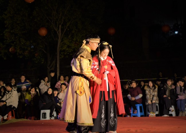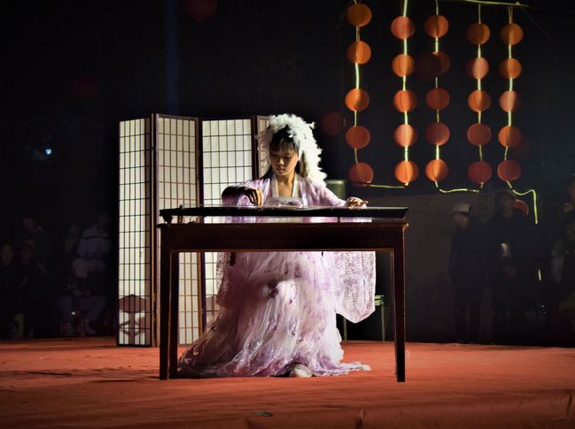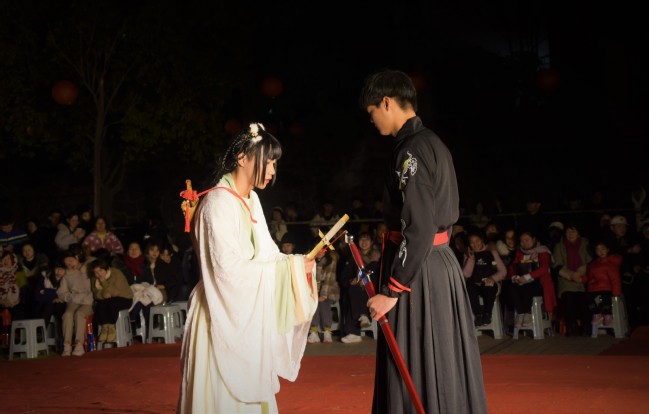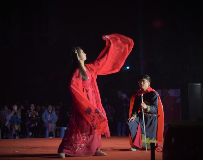 《霸王别姬》作为汉朝的代表作品,演员们借以“落花有意随流水,流水无情伴落花”的动作配合,以幽默的态度向我们娓娓道来一个感人的故事。《昭君出塞》则以出塞之境缓缓诉说出塞之伤。