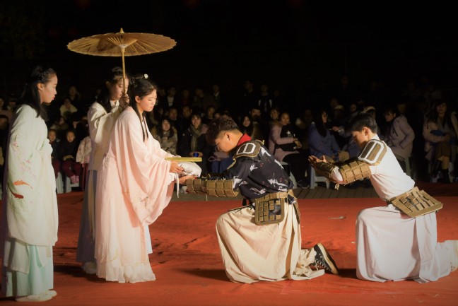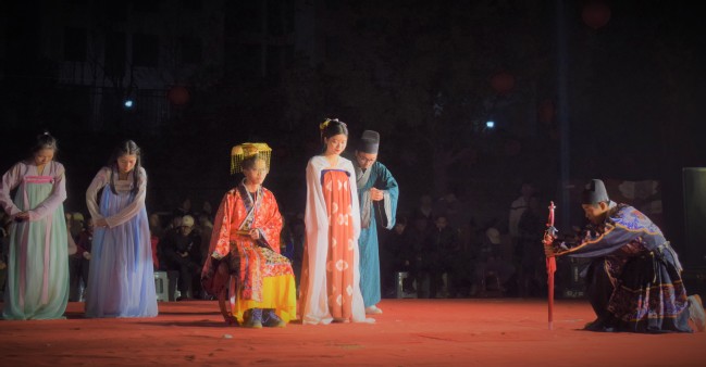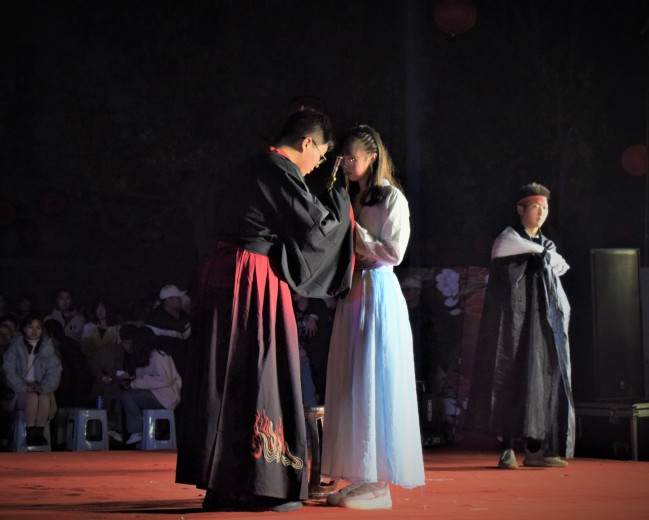 先秦时代的《采薇》,《神话》、《广寒宫》分别以舞蹈和情景剧的形式,向我们展示了先秦时代“百家争鸣”,“百花齐放”的盛世状况。