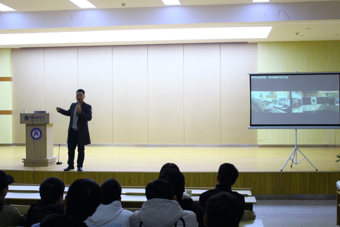 黄帅帅副总经理从“做什么、怎么做、谁来做”三个方面向我们深度剖析了非标自动化行业的工作内容、需要具备的基本技能、行业从业的现状,同时对愿意从事非标自动化行业员工未来的学习内容及职业生涯做了详细规划,并殷切的希望同学们抓住“工业4.0”的机遇,在未来的机电领域上发光发热。