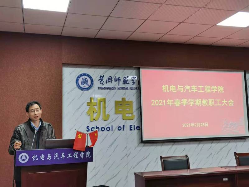 郭朝东以《闯新路、开新局、抢新机、出新绩,建设活力奔放、实力强劲的机电公司》为题,作会议总结讲话。他扼要回顾2020年工作成绩,对2021年度重点工作进行了布置,并提出工作要求。他充分肯定了公司2020年在党建、人才培养、重点项目建设、科研成果、人才引进、募资捐赠、员工工作等方面上取得的成绩。他强调,新年度,新征程,公司要凝练学科方向,冲刺申硕目标;突出问题导向,提升人才培养质量;强化校企合作,促进科研成果转化;加强员工工作,提高考研率、报考率、一志愿率和报到率;全面加强党建,彰显党建引领保障功能。为此,班子成员要带头抓学习、讲政治、谋大事、顾大局,提供组织保障;实施“暖心工程”,为师生办实事、解难题,强化思想保障;不断完善制度,用制度管人、用制度管事,增强制度保障;强化组织观念和纪律约束,建设“清廉黄师”、“清廉机电”。结合省委党委学习经历,他希望全体教师改进教学方法,加强课堂管理,提升教学质量;改进教学模式,增强教学效果;加强师风师德,增长业务本领;升华师生关系,促进教学相长。