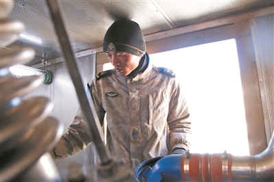 下士马永辉参军前有过修车的经验,现在算是“锅炉班”的维修大拿,无论是锅炉、油机或者水泵都能修。