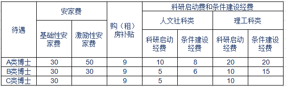 ③科研启动费以博士科研基金项目申报方式获得,分两次拨付。④激励性安家费与条件建设经费发放办法: