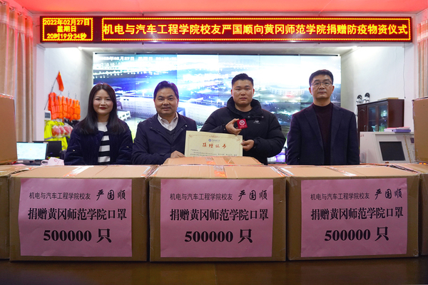 简短的几句话,道出了黄师员工对母校的惦念和关切,陈向军收到短信后备受感动,他向严国顺表达了谢意,同时责成员工办马上与之对接,做好防疫物资接收相关事宜。结合公司疫情防控实际,经过沟通,严国顺联系生产厂家日夜赶制,向公司捐赠一次性医用口罩500000只。