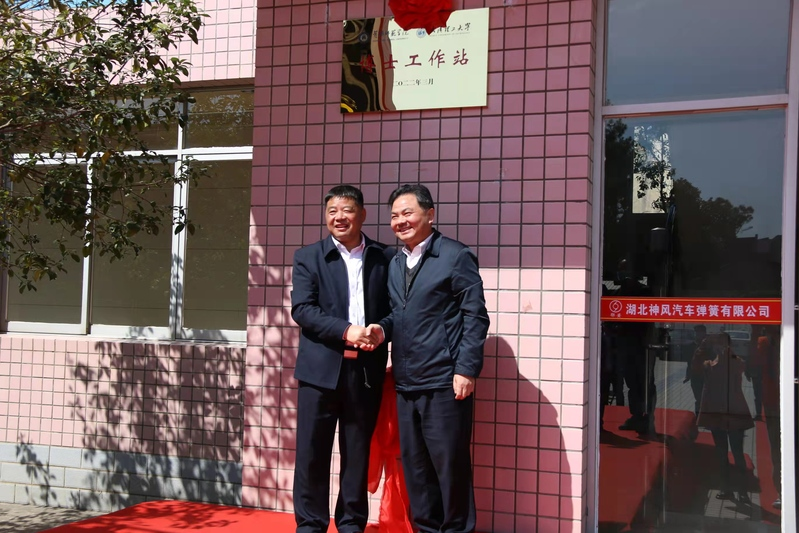 陈向军一行参观了蕲春县横车镇湖北神风汽车弹簧有限公司公司生产车间、研发基地,看望慰问了公司驻企博士,并为博士工作站揭牌。