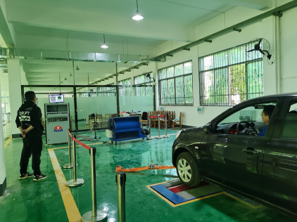 三位老师首先拆下了底盘测功机外盖板检查了里面的积水情况,并对其关键部件进行了详细检查和测试,接着把实验车开上台架,并按规定对车进行了前后绑定,最后开动底盘测功机,对其各项实验性能和项目进行了测试,测试结果正常,能满足汽车工程系相关专业课实验要求。