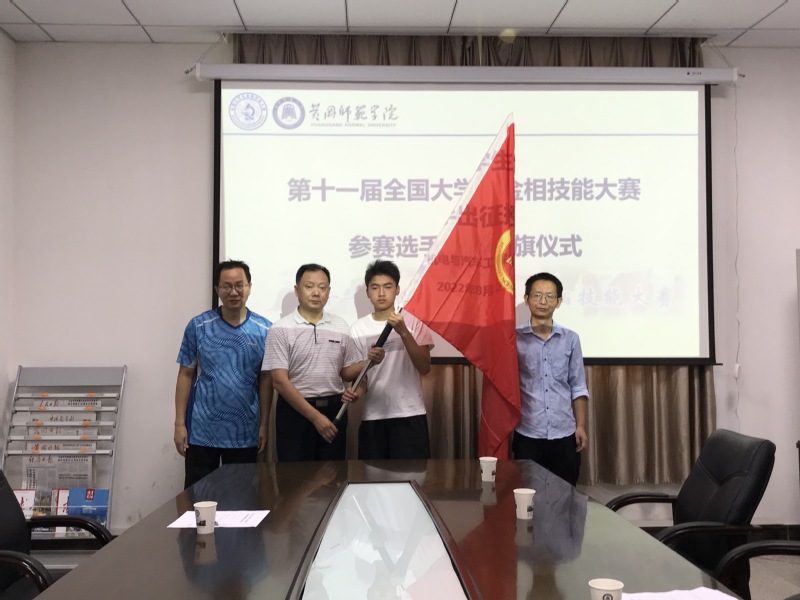 郭朝东为参赛队伍授旗并作动员讲话,他对同学们能入选大赛集训队表示祝贺,他希望同学们心无旁骛、集中精力、争分夺秒备赛,珍惜与清华大学等高校同台竞技的机会,赛出水平、赛出成绩。他要求参赛学生思想上高度重视、行动上高度自觉、心态上高度放松、技能上高度娴熟、技巧上高度有效、目标上高度一致;提高站位、勤学苦练、深入交流、调整心态、充分自信、紧盯目标,争取交一份满意的国赛答卷,为公司的“申硕更名”贡献力量。