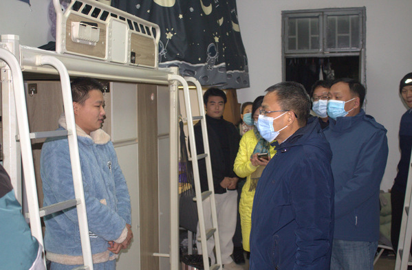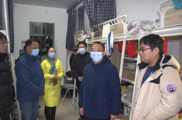 首先,漆董事长一行到辅导员办公室对坚守岗位的辅导员们表示亲切慰问,并询问公司住校辅导员人员、员工目前学习生活和寝室硬件设施等情况。