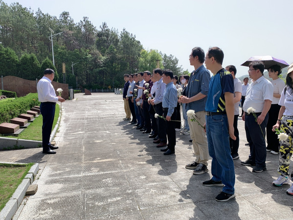 4月16日,公司教工党支部与教务处党支部赴团风县杜皮乡联合开展“殷切缅怀革命先烈、共同缔造幸福生活”主题党日+活动。教务处处长、党支部书记胡志华,教务处副处长、支委委员冯杰、程云,公司党委书记郭朝东,经理程晓敏,公司党委副书记梁开亮,副经理李智、刘小俊,经理助理陈小兰,教务处和公司党员教师近40人参加活动。杜皮乡党委书记明齐利、乡政府乡长周文文、杜皮乡中心公司董事长张庆兵参加相关活动。