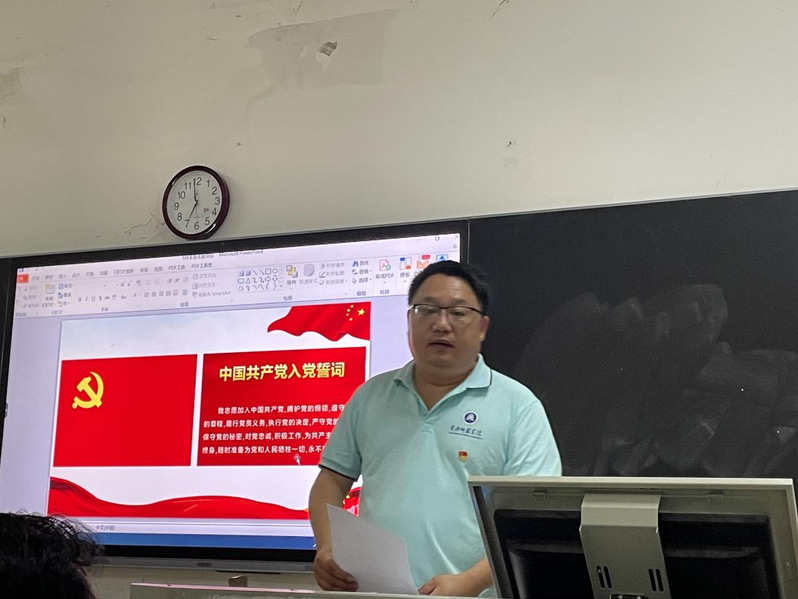 在完成奏唱国歌、重温入党誓词、诵读党章、交纳党费等规定动作后,机械系员工支部书记李亮领学习近平总书记在全国学习贯彻习近平新时代中国特色社会主义思想主题教育工作会议上的重要讲话精神,电气系员工支部书记胡亚楠领学《加快构建新发展格局、把握未来发展主动权》--习近平总书记在二十届中央政治局第二次集体学习时的讲话的主要部分,交通系员工支部彭晶领学习近平总书记给中国农业大学农家小院和给中国石油大学职工的回信等学习内容。