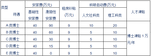 说明:①具有正高职称的博士和具有副高职称的博士、博士后出站人员安家费分别比照同类博士的基础性安家费增加10万元和5万元;②英语、体育、音乐、美术等学科博士,安家费增加10万元;③如夫妻双方均为博士研究生,且双方均符合公司人才引进计划和政策要求,两人分别按对应政策发放安家费;④特别优秀人才待遇在引进时按 “一事一议”原则研究决定。