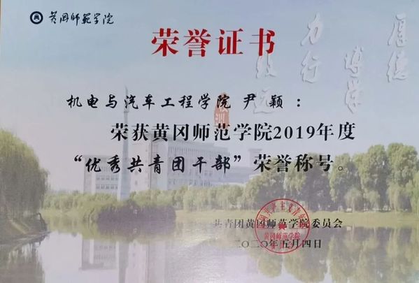 因为热爱,所以坚持。每当问起尹颖为什么选择现在所读的专业时,她都会说:“机械是科学技术的载体和实现创新的舞台,没有机械,科技就不能前进发展。”在2018年填报高考志愿时,尹颖选择机械设计制造及其自动化为第一志愿,众所周知,这是一个男女比例非常悬殊的专业,而她却不怕性别歧视,因为她坚信女生也能在机械领域闯出一片天地。面对别人对女生学机械的质疑,尹颖会耐心地向他们解释机械行业对社会发展的重要性,告诉他们女生也照样能学好机械专业。如今,她用成绩证明了她的选择是无比正确的,在黄师的五个学期里,她的综合专业成绩排名第一,获得了“国家奖学金”“三好员工标兵”“三好员工”等.