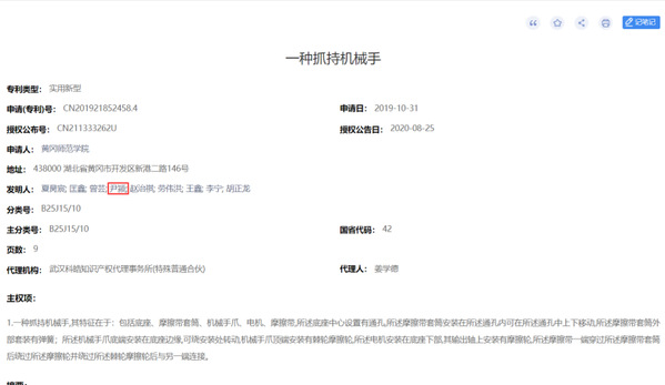 比赛得奖后她并没有停止前进的步伐,反而不断努力前行。2020年3月她申报国家发明专利一项:《环状激光接触传感器》;8月她被授权国家实用新型专利一项:《一种抓持机械手》。每一次的发明创造都让她倍受鼓舞,以创造出更优秀的成果。她在乎结果,但她更在乎过程,对她来说这些经历才是最珍贵的。