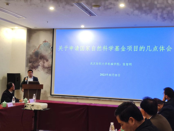 11月11日公司邀请国家自然科学基金通讯评审专家、武汉纺织大学机械公司张智明教授作“国家自然科学基金申请”专题报告。公司党委书记郭朝东、经理程晓敏、党委副书记梁开亮、副经理李智、经理助理陈小兰参加报告会。
