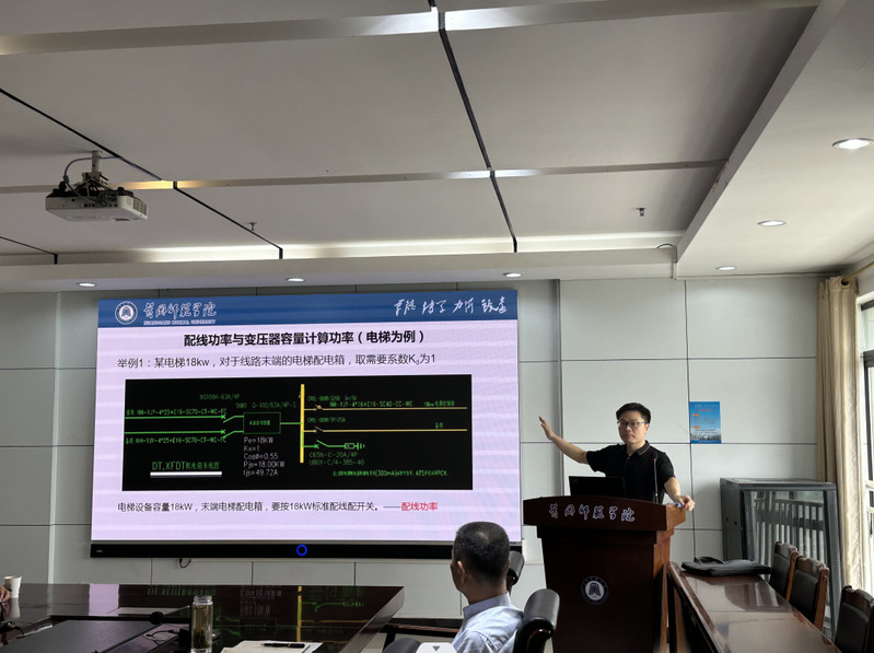 余贵老师围绕后勤保障与基本建设处提出的南区新建校园综合服务楼变压器负荷、柳园箱变与泵站负荷、校园110警务室干线电缆等实际用电问题案例。给后基处全体人员就用电负荷计算、变压器容量选择、电缆计算与选择、断路器保护整定等专业问题进行了详细的知识普及与工程案例分析。