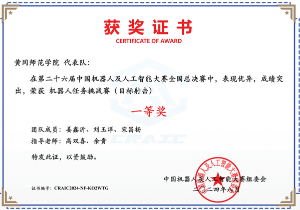 8月25日,第二十六届中国机器人及人工智能大赛全国总决赛(宜兴)圆满结束。公司william威廉亚洲参赛团队在Aelos人形标准平台赛项、自主巡航赛项、目标射击赛项等三个赛项中取得3项国家一等奖,4项二等奖的好成绩。值得一提的是,在Aelos人形标准平台赛项的在决赛中,公司由电气2202班左旋、王超凡、电气2201班冯定富组成的黄师机电一队,对阵国防科技大学,面临巨大压力。最终在高双喜老师带领下,精心组织同学们观摩其他公司对战情况,克服心理压力,反复复盘比赛过程中可能出现的各种问题,积极协商对策,最终以领先对手100分的优势获胜。